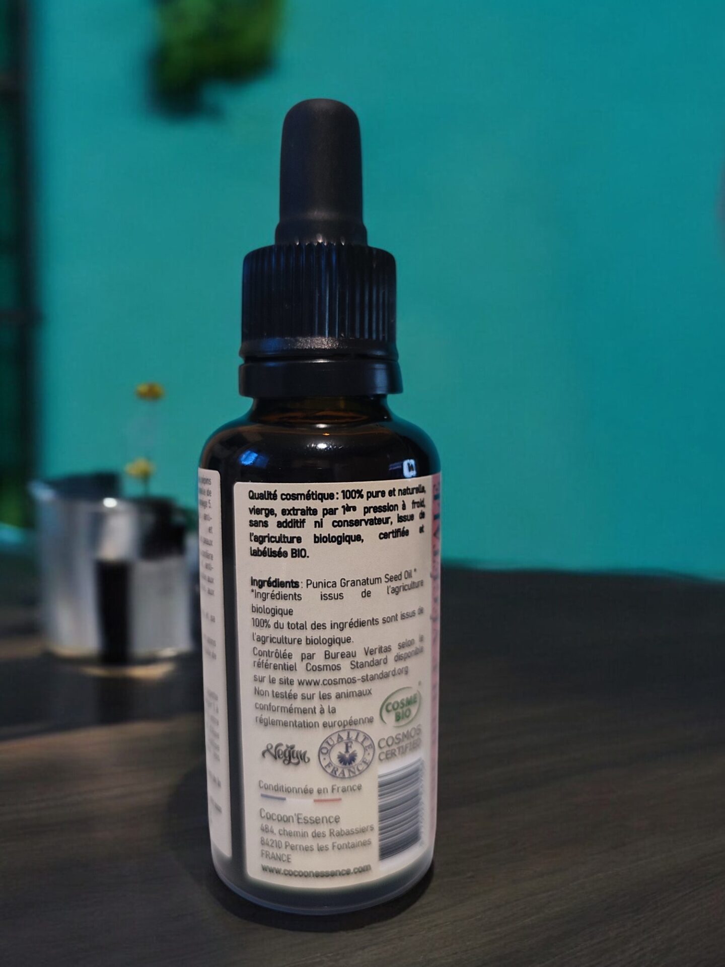 L’Huile de pépin de grenade Bio Anti-âge 30 ml – Cocoon’Essence est 100 % d’origine naturelle, sans additif ni conservateur. Elle est issue de l’agriculture biologique et est certifiée Bio, garantissant ainsi sa qualité et sa pureté.